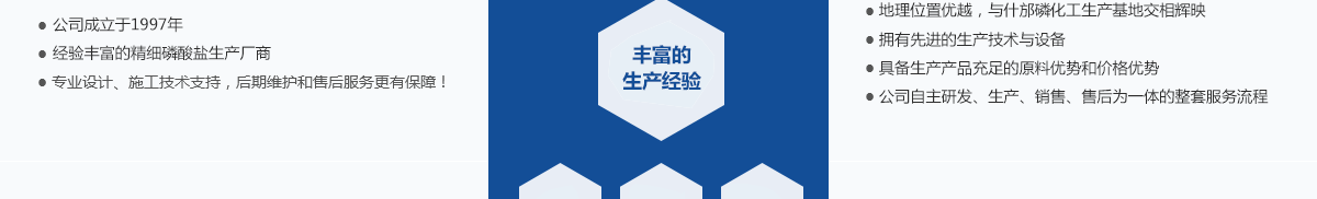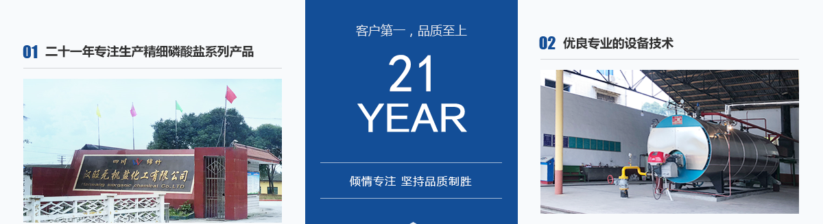 本公司位于四川省綿竹市漢旺鎮,是自1997年成立以來至今,已發(fā)展成為四川生產經驗豐富的精細磷酸鹽系列產品專業生產廠家,地理位置優(yōu)越,毗鄰四川新市和拱星工業園區,與什邡磷化工生產基地交相輝映。主要生產產品有:磷酸二氫鉀、酸式磷酸鉀、磷酸氫二鉀、磷酸脲、磷酸二氫鈉、磷酸氫二鈉、磷酸三鈉、磷酸二氫銨、磷酸氫二銨等系列磷酸鹽產品。